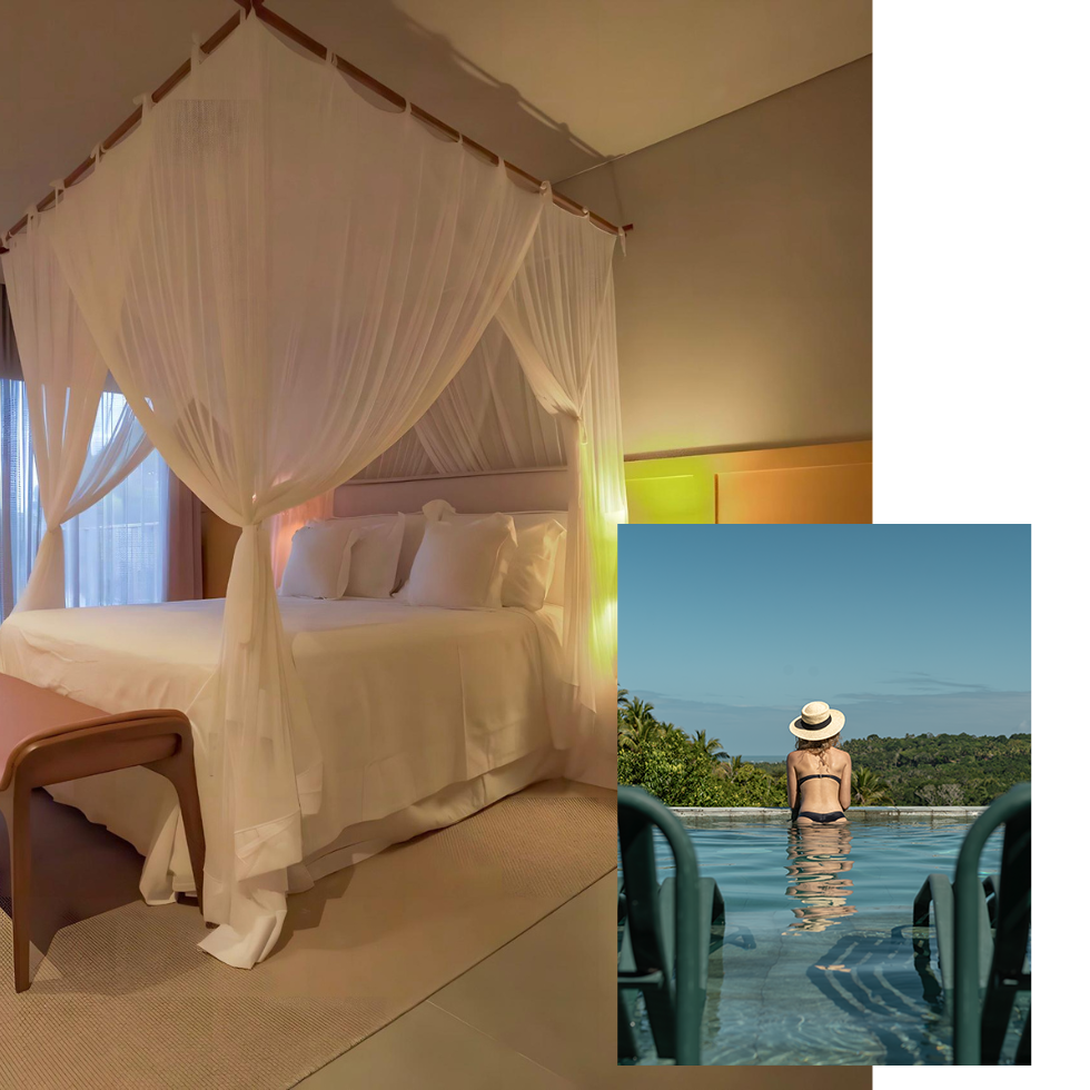 Each home features an open floor plan, large terraces, and custom contemporary furnishings. In this oasis of comfort and tranquility, subtle details reflect the regional culture of Bahia. Spacious bathrooms, large and well-equipped kitchens, private pools, on-demand housekeeping and culinary services, and other practical amenities contribute to an extraordinary stay.